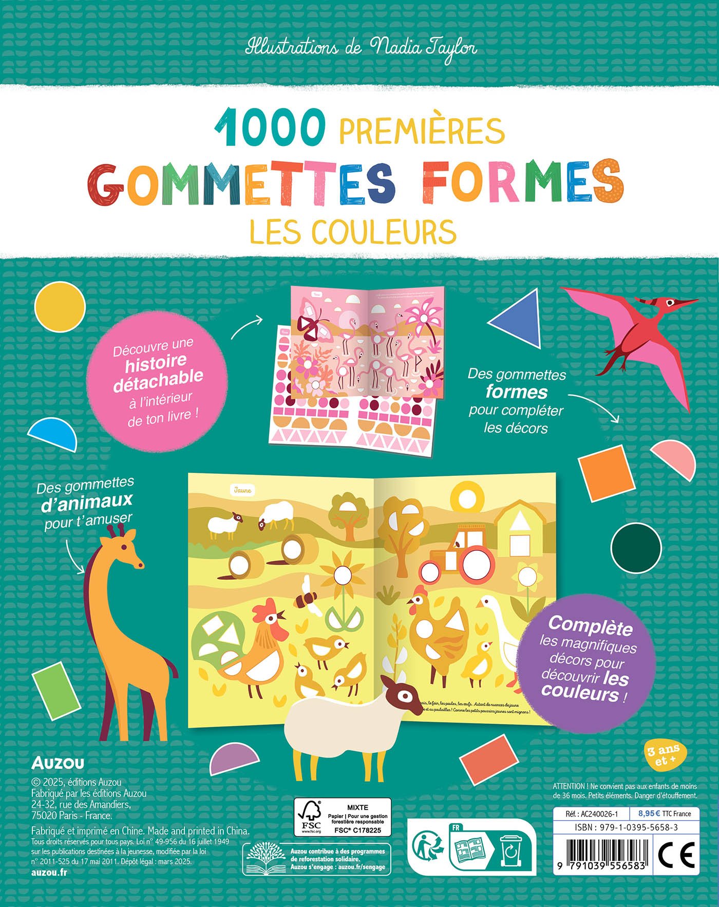 Une activité parfaite pour favoriser l’éveil et la motricité des tout-petits ! En plus, deux pages de gommettes animaux à coller partout !