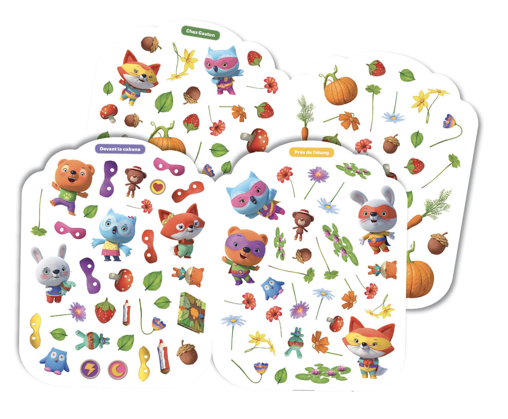 Cette fois, tu fais partie de l’aventure ! Place les 280 autocollants dans les décors pour aider les Mini-Héros à récolter des trésors pour leur cabane.