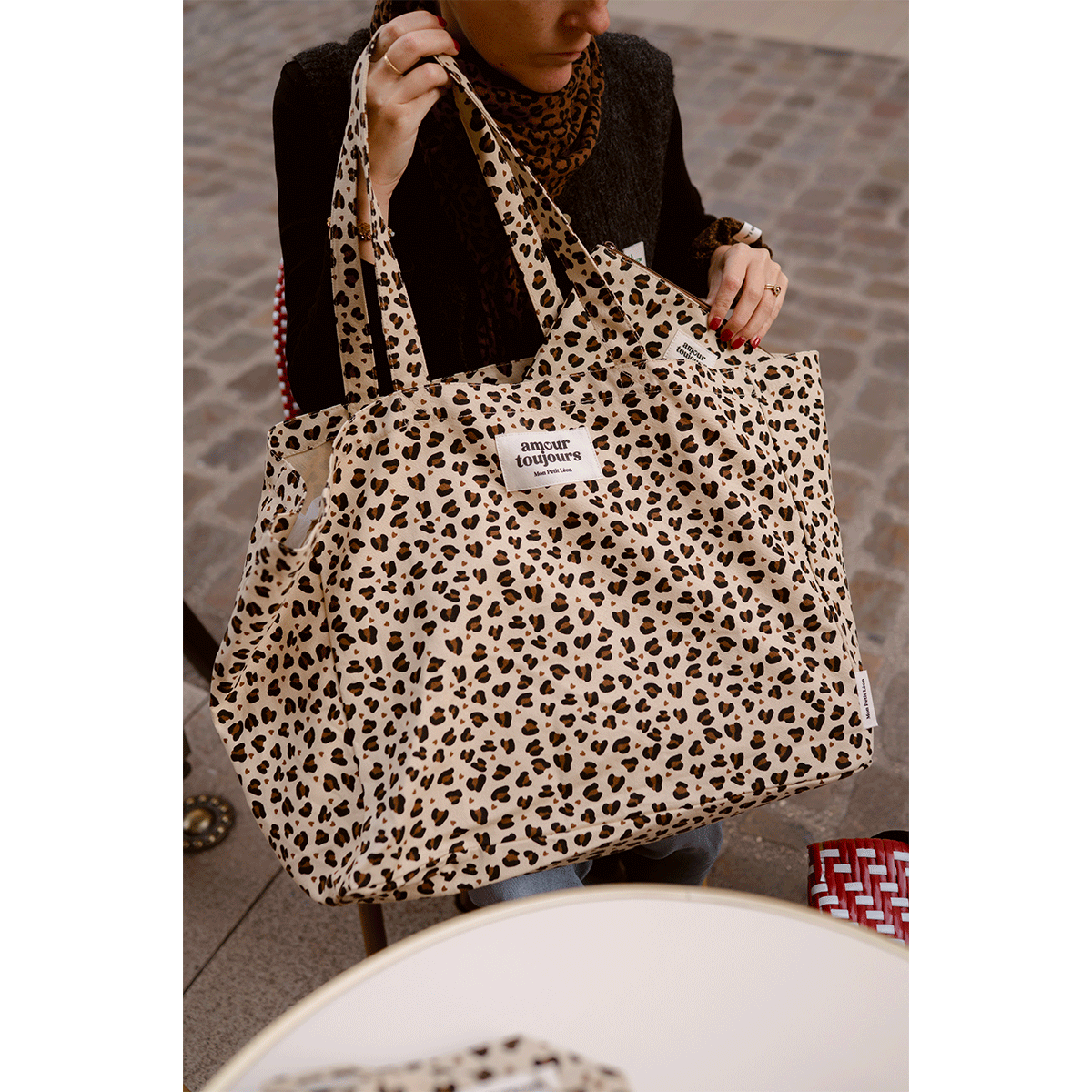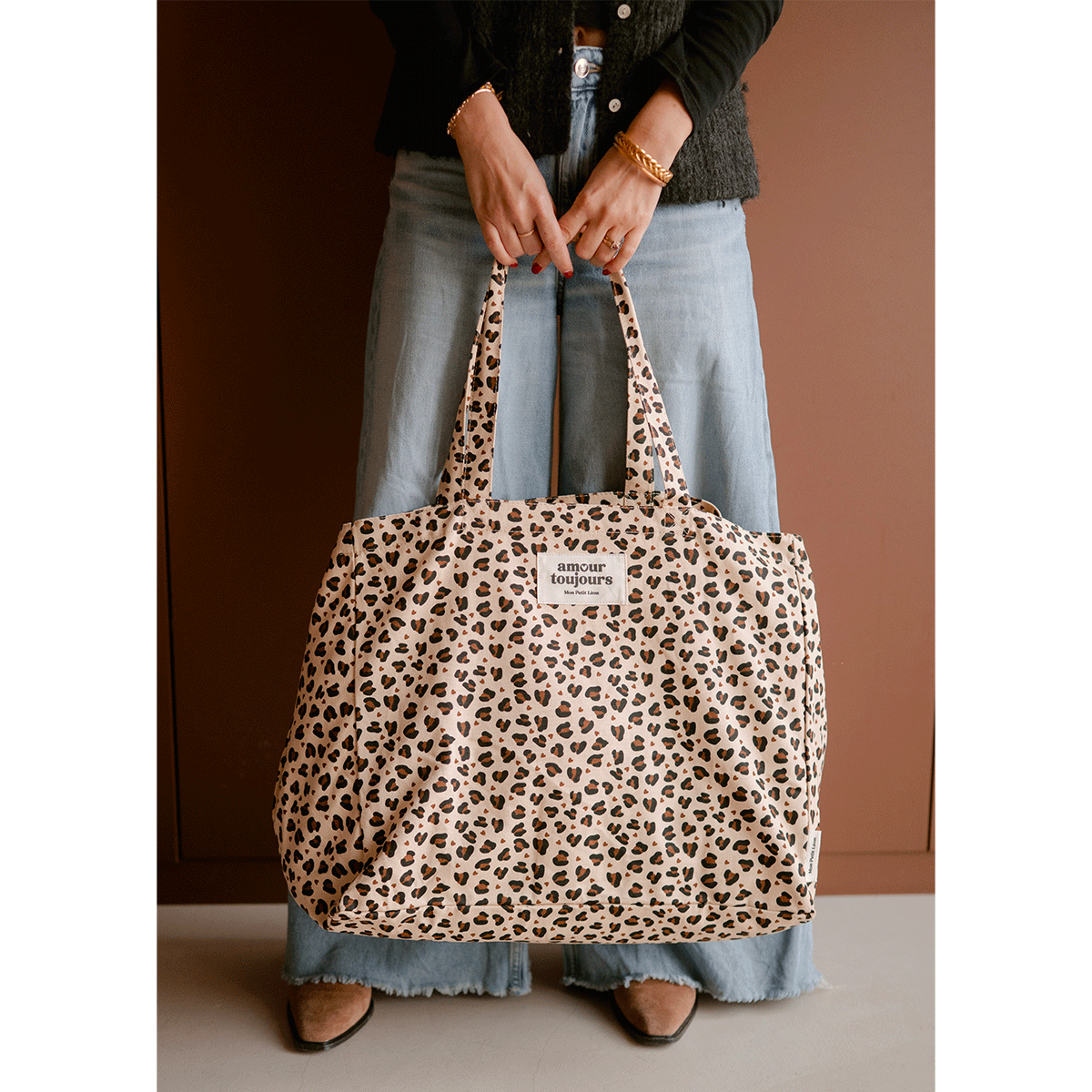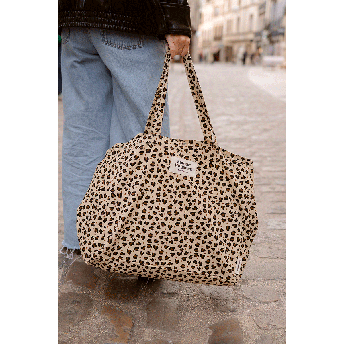 Cabas XXL Léopard Coeur – Amour Toujours