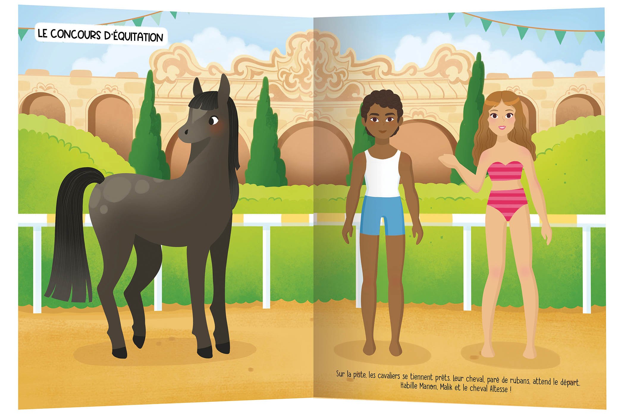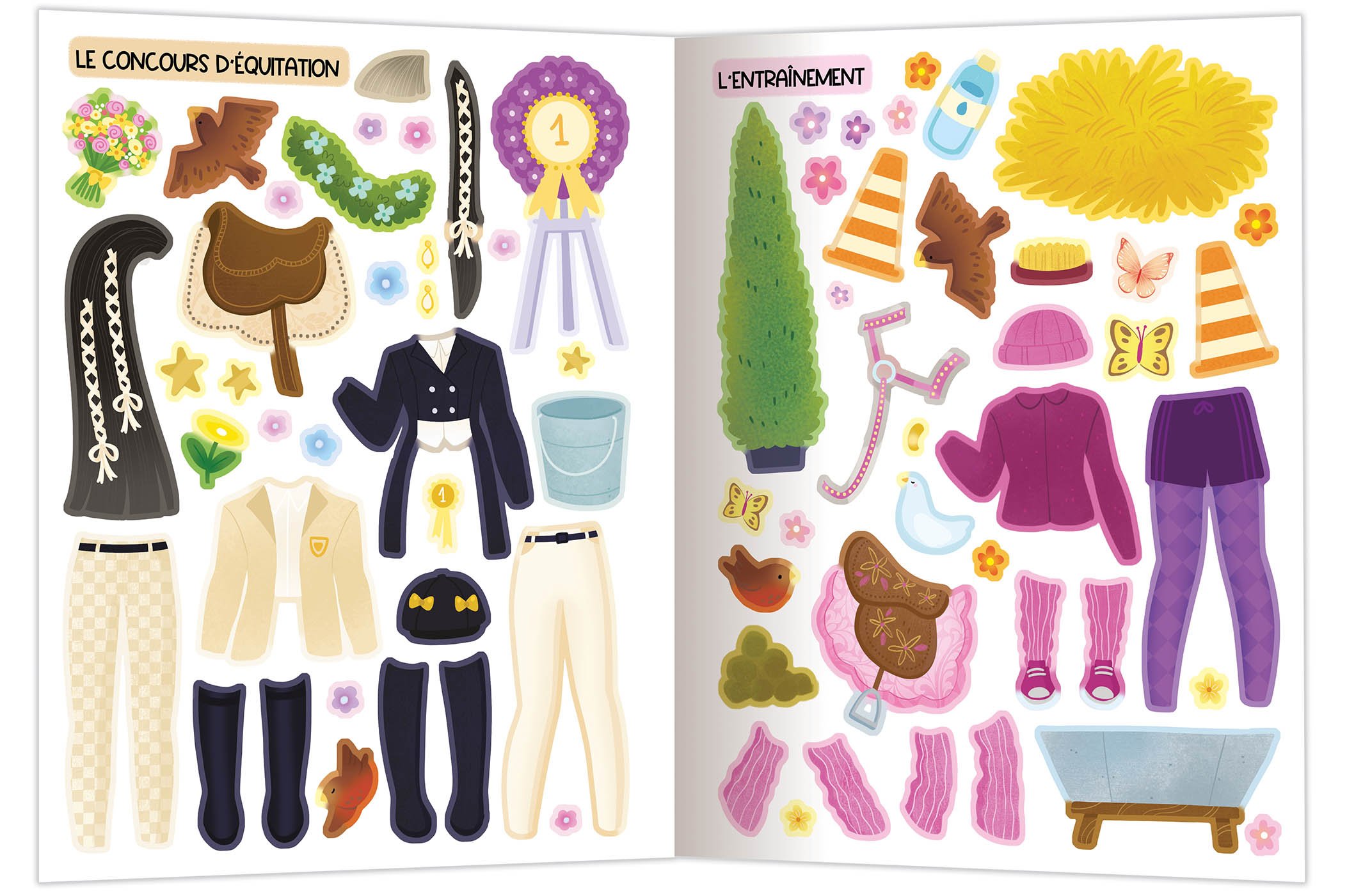 Avec plus de 500 autocollants variés, l’enfant habille cavaliers, cavalières et chevaux, invente des tenues d’équitation et anime une jolie histoire.