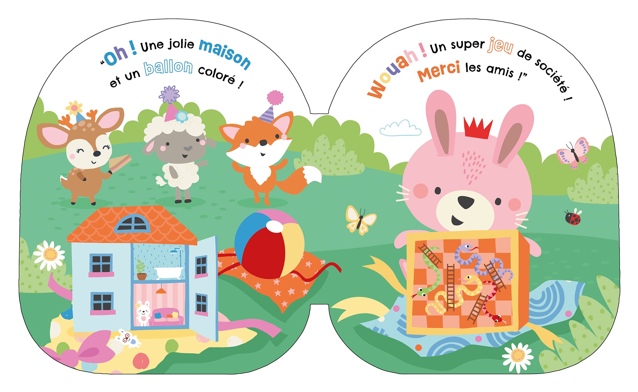 Ses amis lui ont apporté des cadeaux : une jolie maison, un ballon, un jeu de société… Mais partager n’est pas toujours facile !
