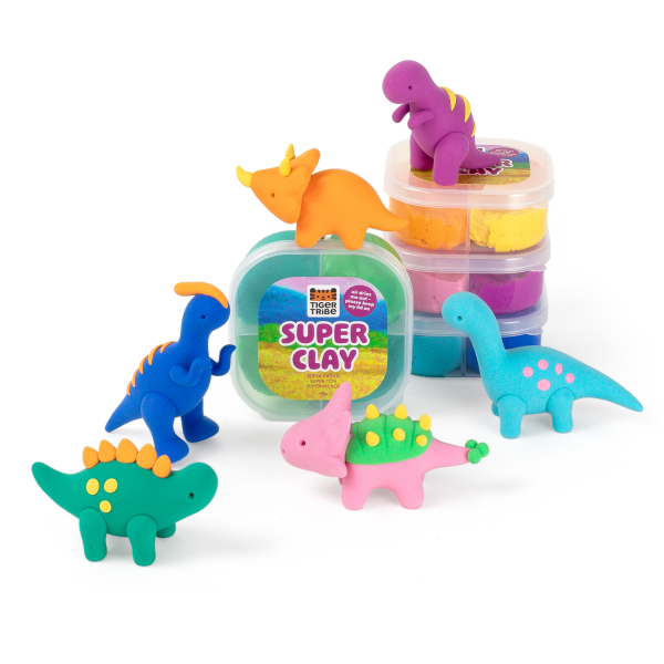 Ce coffret d’activités amusant est rempli de tout le nécessaire pour créer six adorables dinosaures en pâte autodurcissante.
