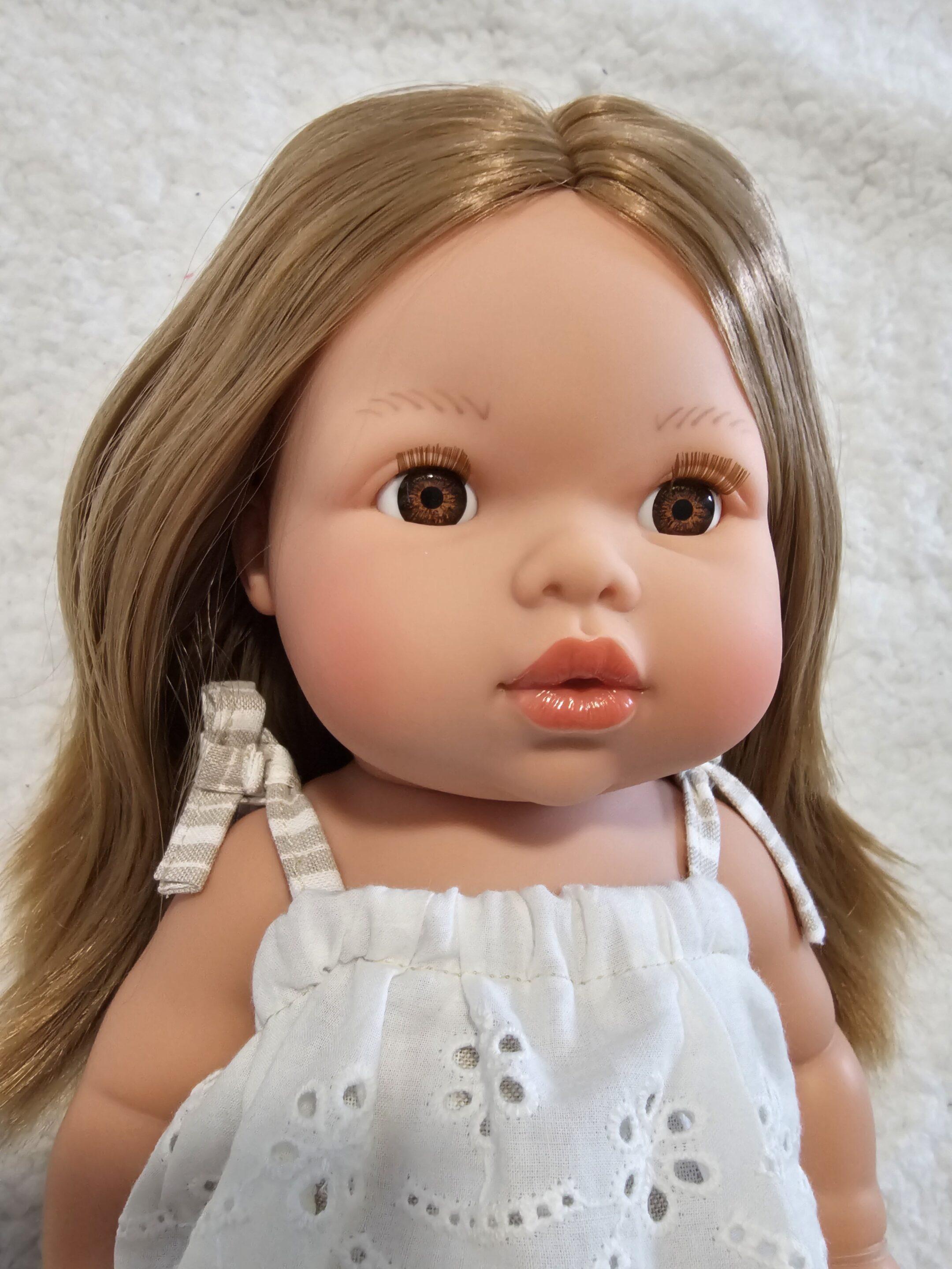 C’est une gamme de poupées en vinyle souple écologique et non toxique (sans phtalate), réalisée avec des matériaux de première qualité. La tête et les membres sont mobiles .