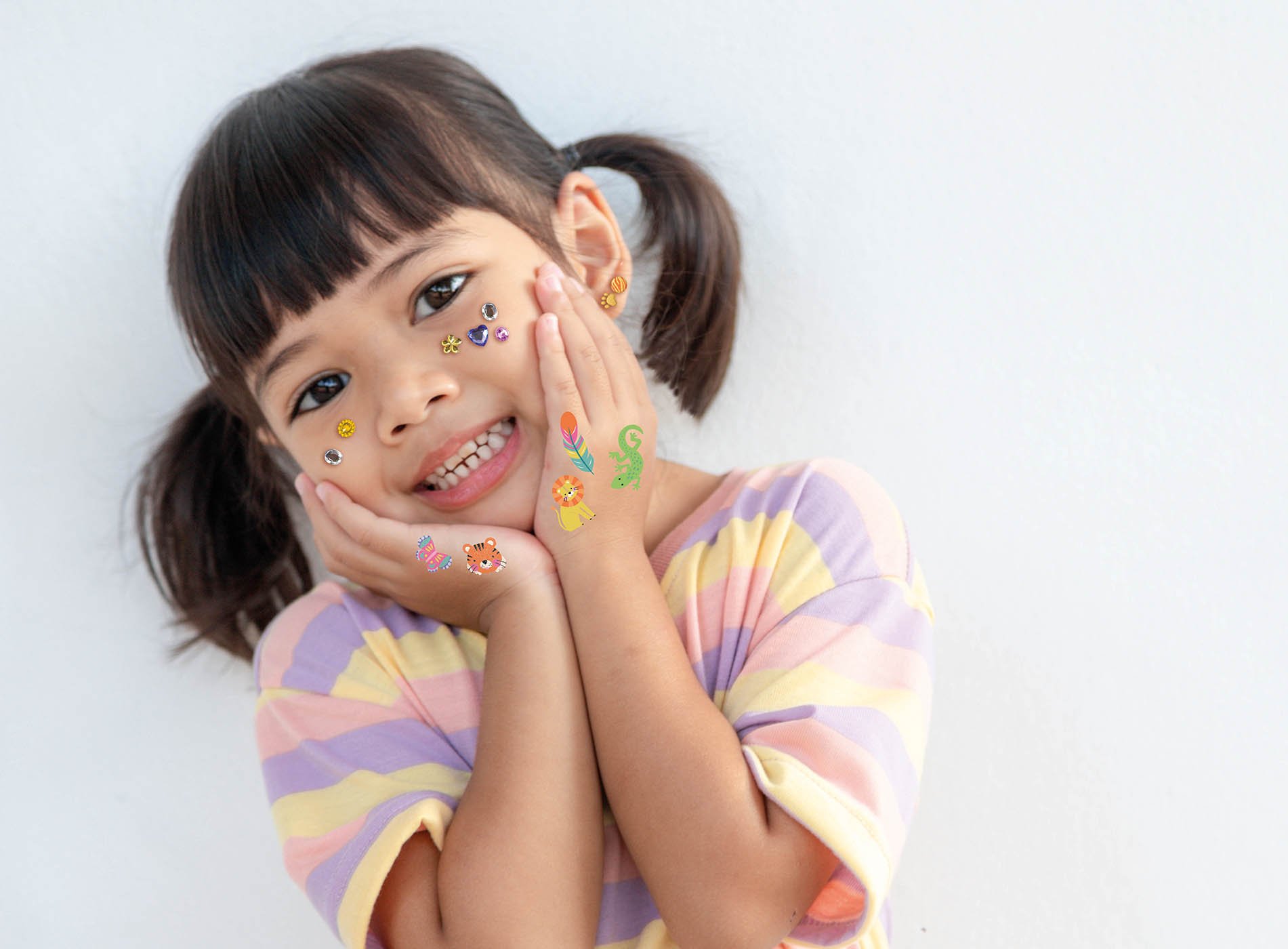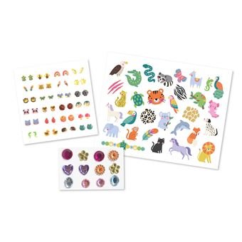 Une pochette qui propose : des strass de visage, des tattoos et des boucles d’oreilles autocollantes qui brillent !