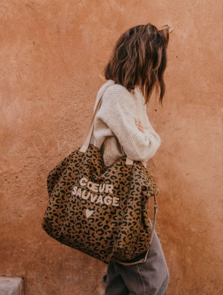 Sac cabas XL léopard « Coeur sauvage » Zakuw