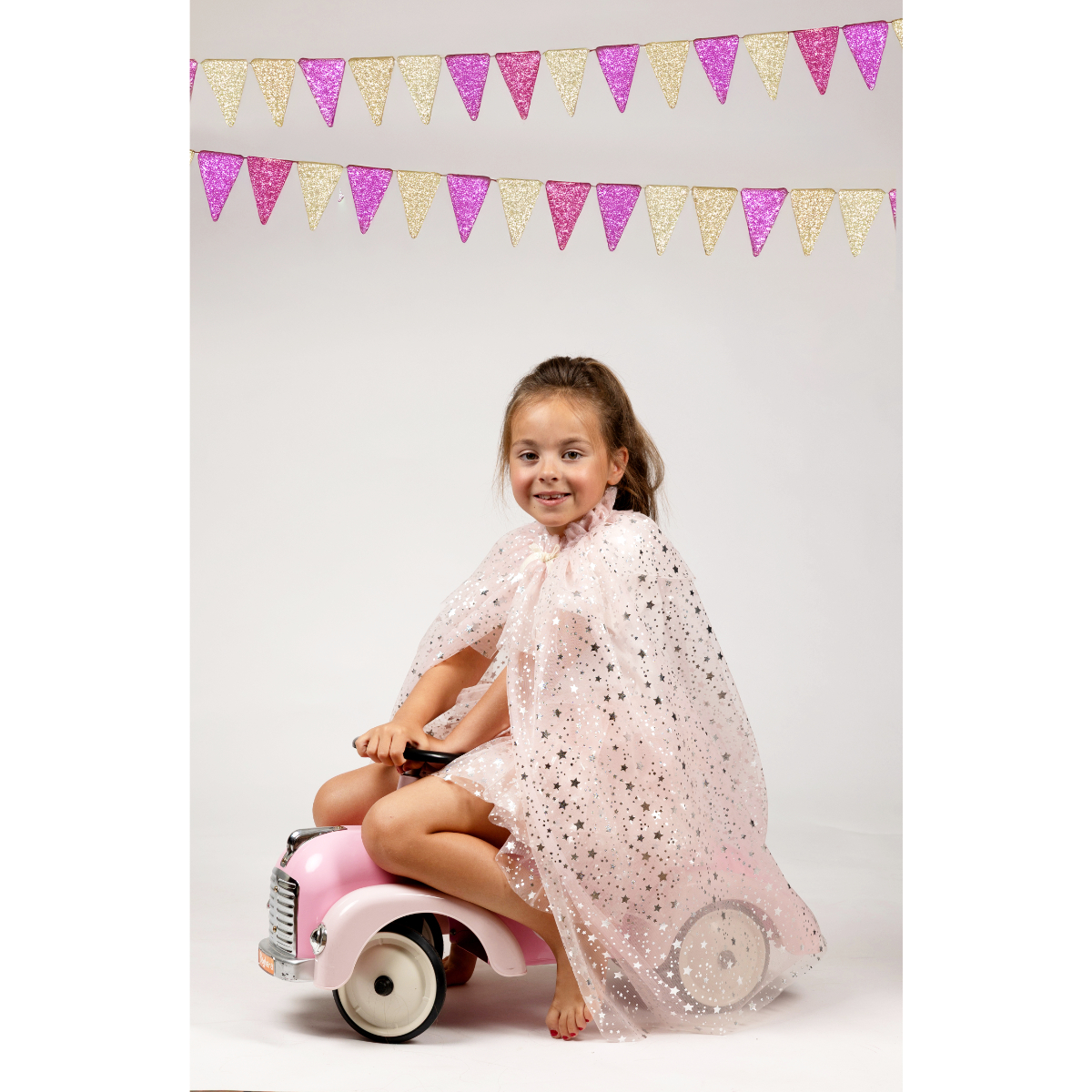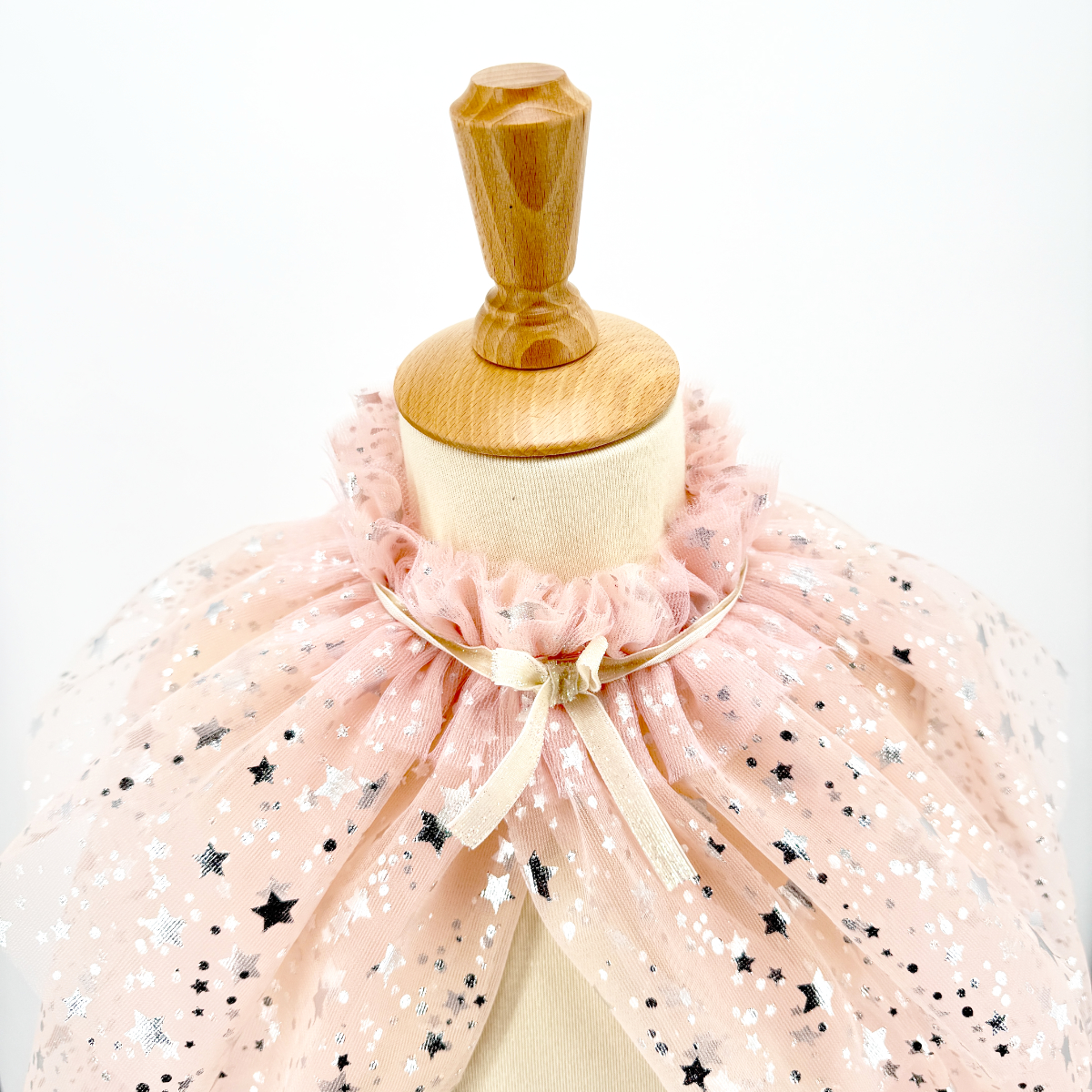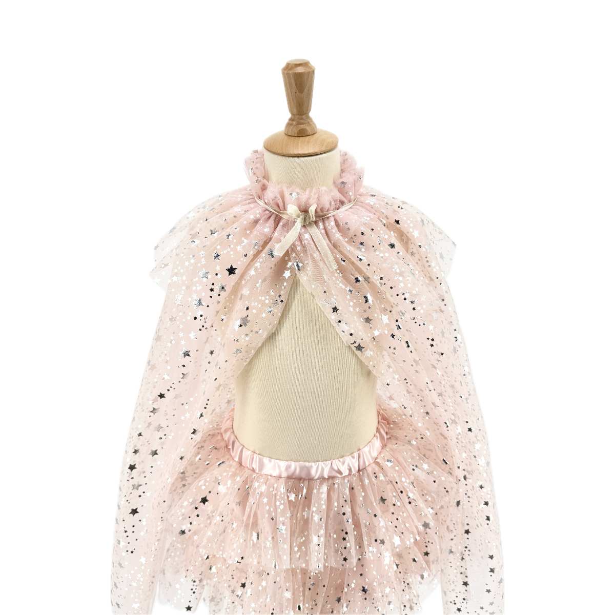 Le set Tutu et Cape Loane couleur rose poudré est composé d’un tutu en tulle avec impression d’étoiles dorées et d’une cape assorties.